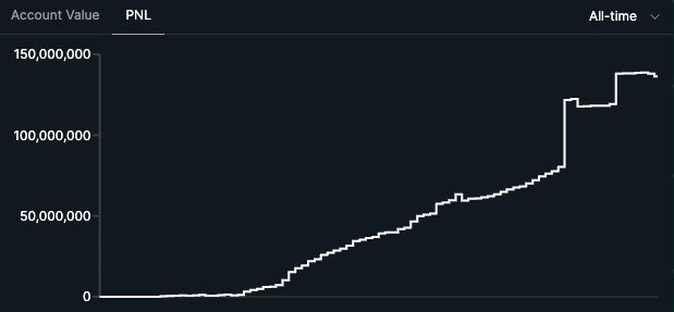 1) You have to zoom out. The vault has a positive PNL of ~140M USDC since inception.
