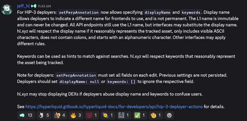 HIP-3 keywords and display name announcement.