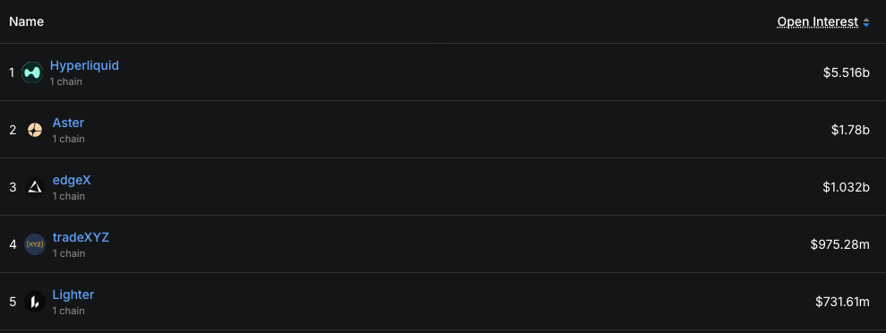 You see the numbers above… You can also see that HIP-3 deployers now are collectively the third biggest perp DEX by OI, with Trade XYZ being # 4 by itself, according to DefiLlama: